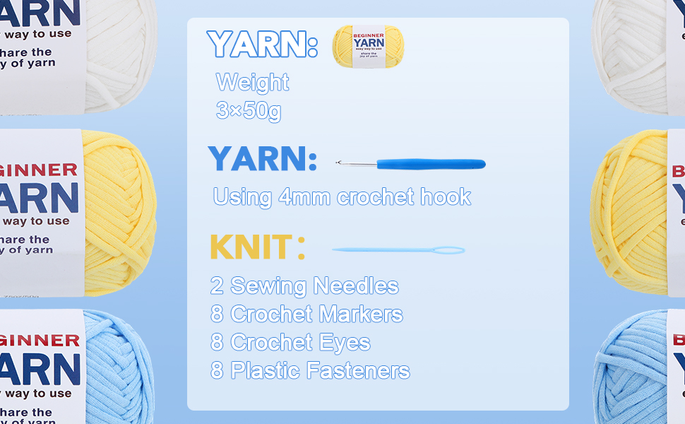 【بداية بسيطة】مزيج القطن والنايلون المكتنز مناسب للمبتدئين، وهناك الكثير من الملحقات مثل خطافات الكروشيه وعلامات الغرز لمساعدة المبتدئين. لا تقلق، كن مبدعا.