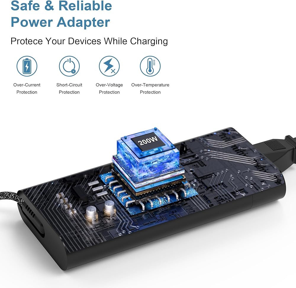 شاحن الكمبيوتر المحمول XOUBZ 200W 10.3A لجهاز HP Omen 15 16 17 Victus 15 16 Zbook Fury Studio 15 16 Pavilion Gaming 15 16 17 Envy 16 17 TPN-DA10 L00818-850 TPN-LA21 ADP-200HB B محول التيار المتردد