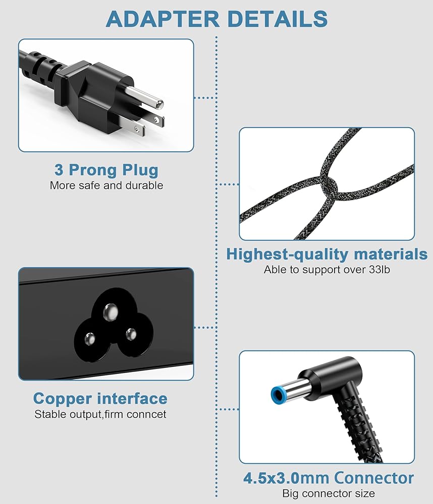 • 【وصف المنتج 】 الإخراج: 19.5 فولت ~ 10.3 أمبير 200 واط (متوافق مع 150 واط 7.7 أمبير /135 واط 6.9 أمبير) ؛ الإدخال: 100 ~ 240 فولت 50 ~ 60 هرتز، الموصل: 4.5 مم × 3.0 مم طرف أزرق، يرجى التحقق من مواصفات الكمبيوتر المحمول الخاص بك قبل شرائه. يدعم الشحن السريع
