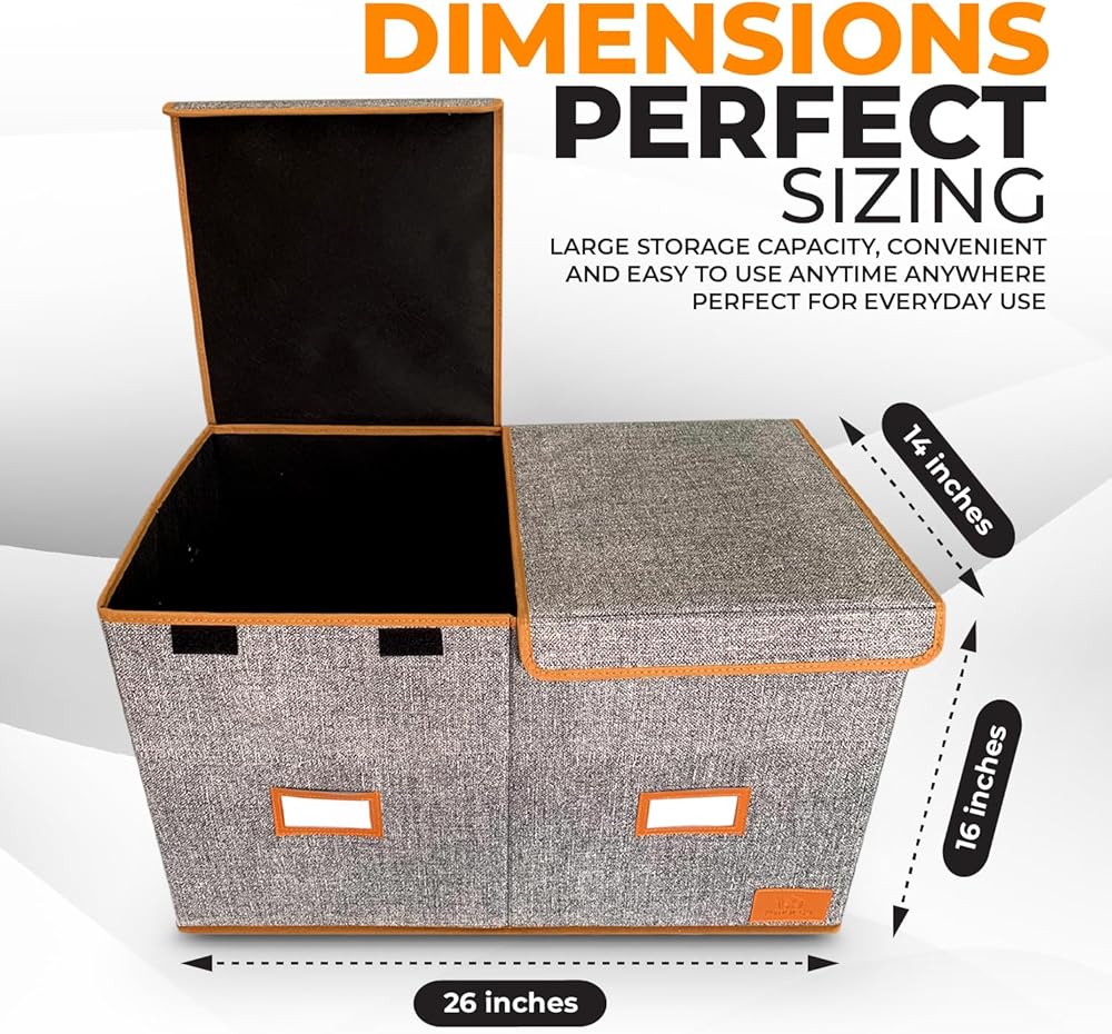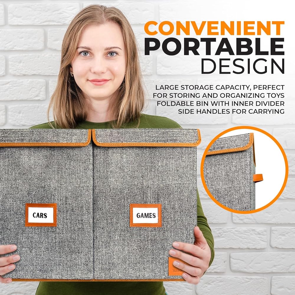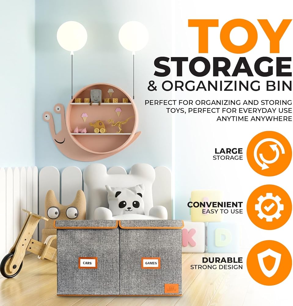 Large Capacity: The size of the toy storage box is 26.5 x 14 x 16 inches which provides ample space to store your childs toys neatly. The internal space can be divided into two sides using the provided divider panel, making it easy to classify and store different types of toys.