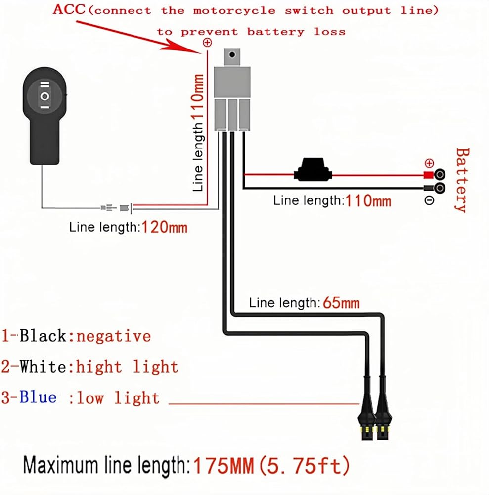 LINJIE دراجة نارية مزدوجة اللون / مجموعة أسلاك شعاع عالية منخفضة 12 فولت تتابع مزدوج اللون أضواء أسلاك تشغيل إيقاف مقاوم للماء مجموعة أسلاك دراجة نارية عالية منخفضة الشعاع (5.75 قدم)، أسود