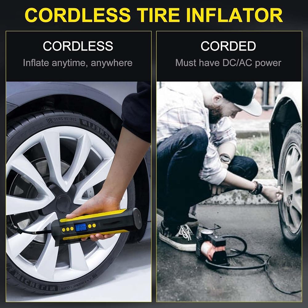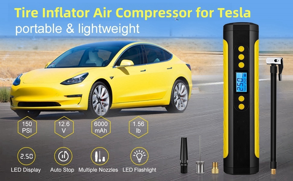 منفاخ إطارات KIKIMO لضاغط هواء Tesla المحمول، لملحقات Tesla Model 3/Y/S/X، 12 فولت لاسلكي مع مقياس ضغط رقمي، مضخة هواء 150 رطل لكل بوصة مربعة مع ضوء LED لـ Tesla، دراجة