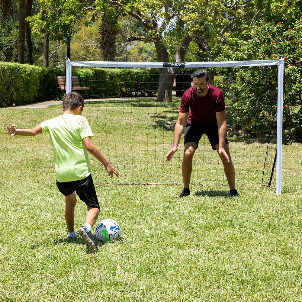 استعد للعب: كن دائمًا قادرًا على الاستمتاع برياضتك المفضلة في أي مكان مع شبكة كرة القدم المحمولة هذه للأطفال والكبار من العلامات التجارية Lanos! متوفر بثلاثة أحجام مختلفة لجعله مناسبًا لأي لاعب، هدف كرة القدم المحمول هذا خفيف الوزن بشكل لا يصدق وسهل التجميع، لذلك ستتمكن من أخذه إلى أي مكان للتدريب أو الألعاب.