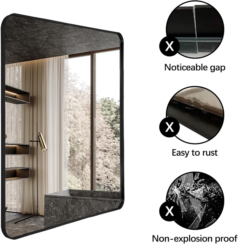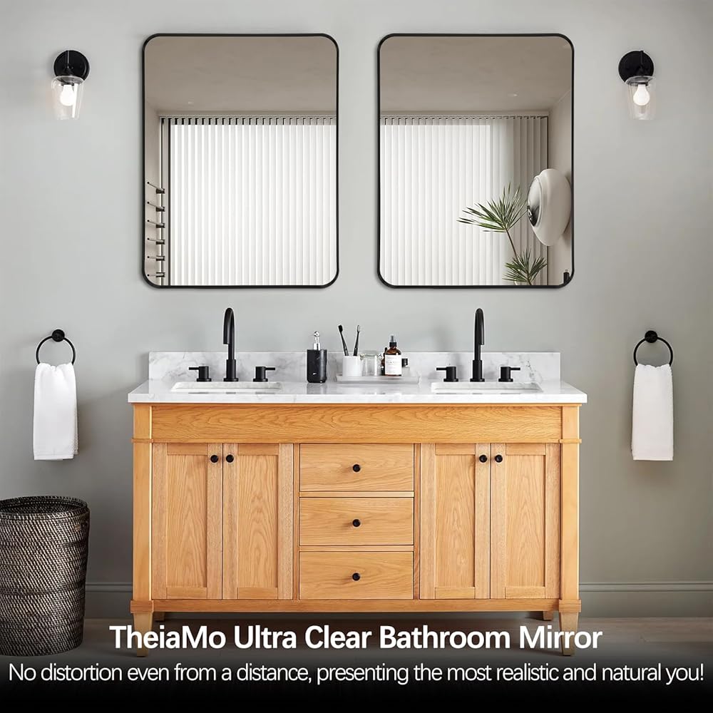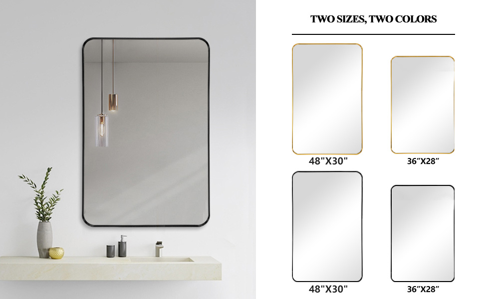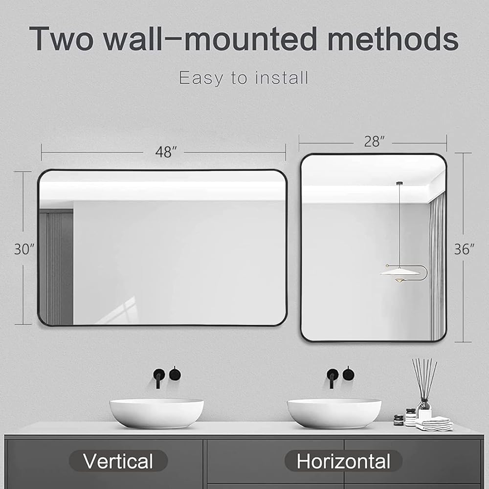 【 مرآة عملية وزخرفية مؤطرة】 يبلغ مقاس هذه المرآة المثبتة على الحائط 48 × 30 × 1.2 بوصة وهي مرآة مستطيلة بإطار معدني أسود بزوايا مستديرة. تعتبر هذه المرآة المستطيلة خيارًا ممتازًا لطاولات الزينة وطاولات الحمام ومعلقات الحائط، مما يجعل المساحة أكبر وأكثر إشراقًا.