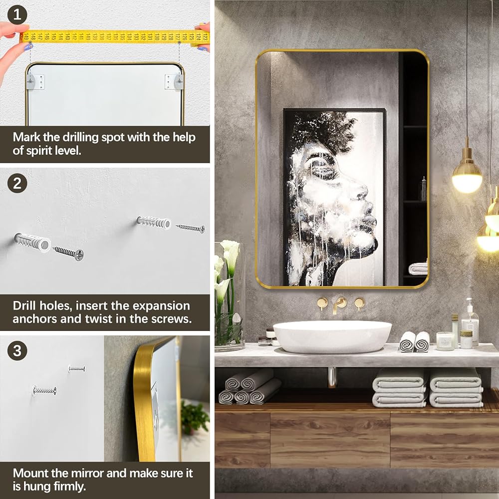 【عرض أفقي أو رأسي】قم بتعليق مرآة الحمام بأي طريقة تناسب مساحتك. تسمح فتحات المفاتيح الثلاثة المثبتة بالتعليق الأفقي أو الرأسي وسهولة التركيب. تأتي هذه المرايا المؤطرة للحمام مع 2 براغي ومسامير للتوسيع لذلك كل ما هو مطلوب.