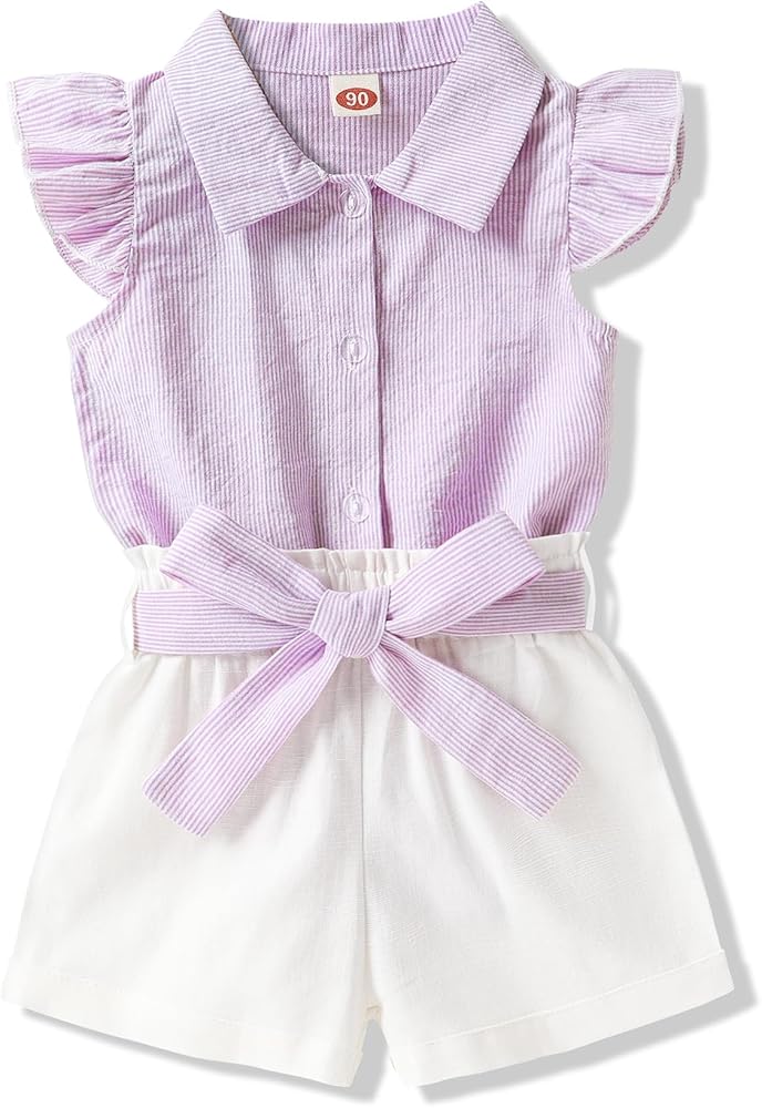 - Stripe Blouse, good dressing effect and breathability; White shorts; Playwear, homewear for your little one