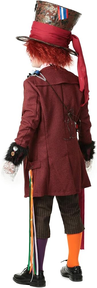 PRODUCT INCLUDES: This Authentic Mad Hatter Costume comes with a jacket and attached scarf, shirt, vest, pants, bow tie, gloves, and ribbons.