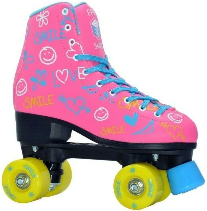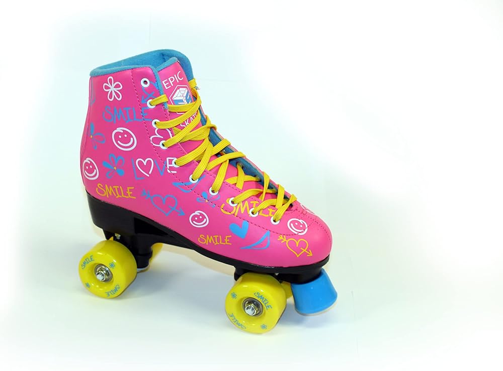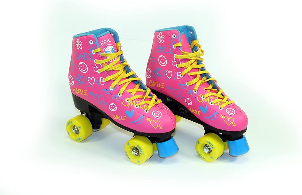 Show your style the next time you're at the rink with the Epic Blush Quad Roller Skates. These skates stand out in a crowd thanks to the fashionable, vinyl uppers and color coordinated combination of 58mm indoor/outdoor quad skate wheels. With this stylish, forward design, we didn't forget the quality and reliability our customers have come to expect in an Epic Skate. You'll receive ABEC-5 Precision Speed Bearings, PU Cast high rebound wheels and cushions on top of an extremely comfortable high-top boot with soft, padded lining.