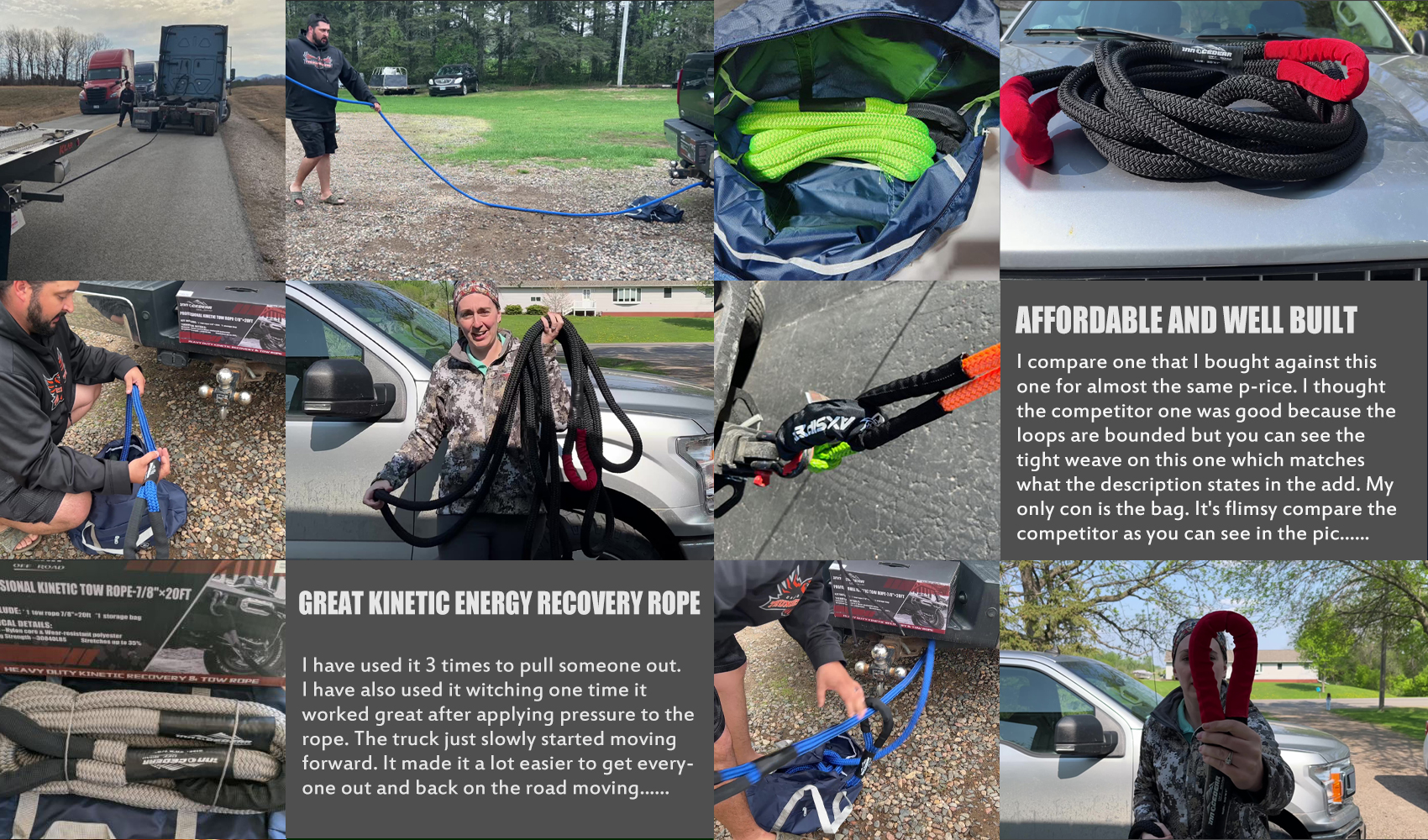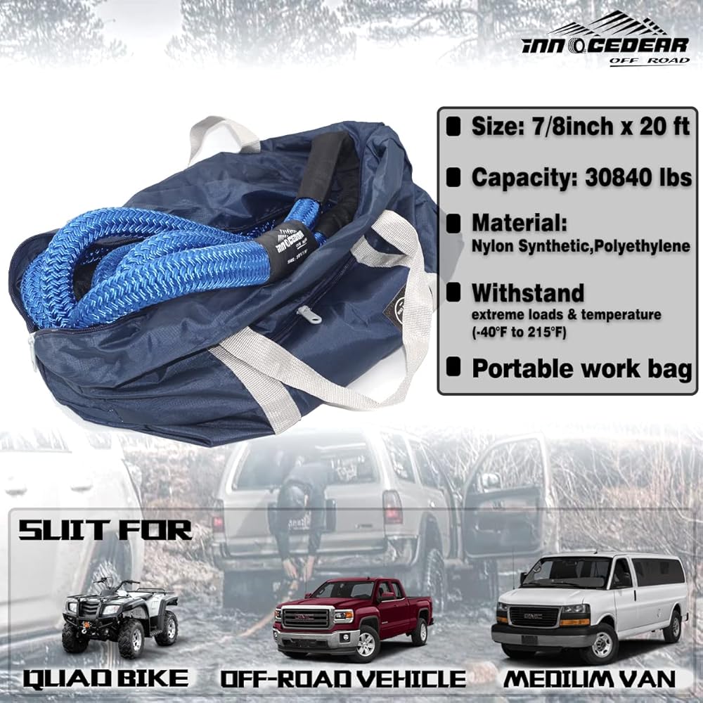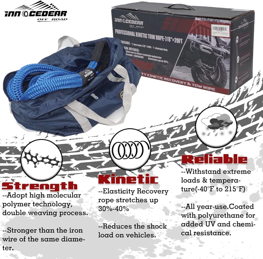 ➤حبل احترافي عالي القوة: ستندهش من مدى روعة قدرة الحمل لحبل التعافي الحركي بقطر 7/8 بوصة. يتمتع هذا الحبل بقوة كسر تزيد عن 30000 رطل، مما يجعله مثاليًا للغاية لأي مناسبة خارج المنزل. يمكن للحبل سحب سيارة الدفع الرباعي بسهولة دون أي إجهاد ملحوظ بينما يتطلب جهدًا أقل بكثير مقارنةً بأشرطة أو سلاسل السحب الأكثر صلابة نظرًا لطبيعته الحركية الممتدة.
