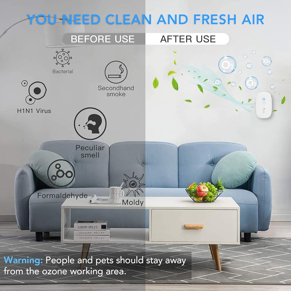 【إزالة فعالة للروائح】- الأوزون يمكنه التخلص من الروائح بسرعة وبشكل كامل وتنقية الهواء مما يسمح لك بالاستمتاع دائمًا بالهواء النقي.