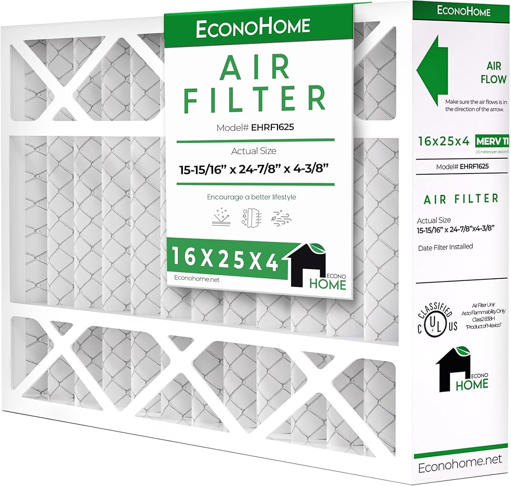 ترشيح ممتاز – ستساعدك مرشحات الهواء EconoHome لدينا على تنفس هواء أنظف في الداخل. تساعد مرشحات الفرن MERV 11 16x25x4 على التقاط معظم الجزيئات المحمولة بالهواء (الوبر والغبار الناعم ووبر الحيوانات الأليفة والدخان والمزيد) دون التأثير على تدفق الهواء في منزلك.