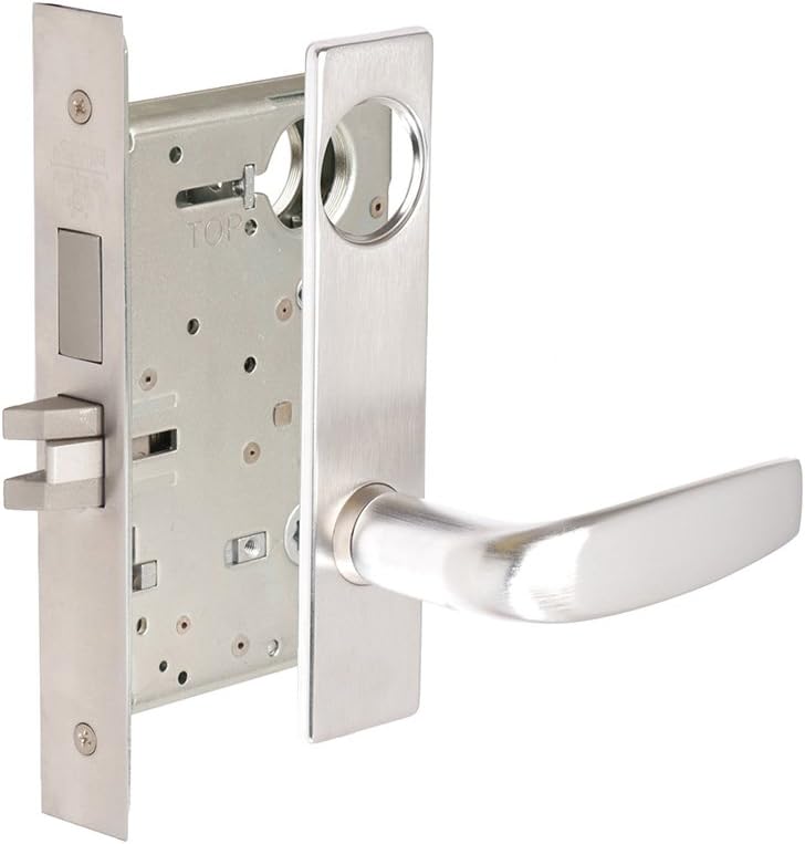 Corbin Russwin ML2065-CSP-626-LC is a Grade 1 mortise lock designed to meet the rigors of high-traffic commercial, institutional, industrial and government applications. Constructed of heavy-gauge steel, the lock body features a patented Quick Reversible latchbolt, so the lockset can be re-handed without disassembling the lock case. The 10-year warranty lends to its versatility and reliability, making it the ideal choice for use in offices, schools, hospitals, hotels and other high-use applications. Door Thickness 1-3/4" (44mm) standard. Backset 2-3/4" (70mm). Lockcase is Heavy-gauge steel, 5-7/8" (149mm) x 4" (102mm) x 15/16" (24mm). Front is heavy-gauge steel, 8" (203mm) x 1-1/4" (32mm) x -3/32" (2mm). Accommodates flat doors and doors beveled 1/8" (3mm) in 2" (51mm). Furnished 1-1/16" (27mm), Armored Front is wrought brass, bronze or stainless steel attached by machine screws to lockcase front. Latchbolt is a 2-piece mechanical with anti-friction insert, 5/8" (16mm) x 1" (25mm) x 3/4" (19mm) throw. Strike plate is wrought brass, bronze or stainless steel, ANSI straight lip standard, 4-7/8" (124mm) x 1-1/4" (32mm) x 1-1/8" (29mm) lip to center. Warranty is 10-year limited. Certification/Compliance ANSI/BHMA Certified A156.13 Series 1000, Operational and Security Grade 1. Meets A117.1 Accessibility Code. Federal Meets FF-H-106C. UL/cUL-UL10C Positive Pressure. All locks listed for A label and lesser class doors, 4' (122cm) x 10' (305cm) single or 8' (244cm) x 10' (305cm) pair (3 hour fire door). Letter F and UL symbol on armored front indicate listing.