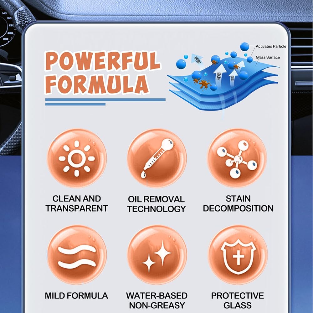 • 🧽🧽HIGHLY EFFECTIVE CLEANING: Our car glass cleaner contains a mild abrasive and non-ionic surfactants that can penetrate oil films and dirt, fundamentally removing all stains. This car glass oil film remover not only deeply removes the dirt on the glass surface, but also does not cause any damage to the glass, providing a highly clean and refreshed appearance.