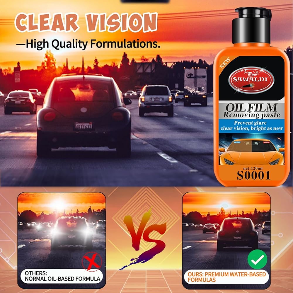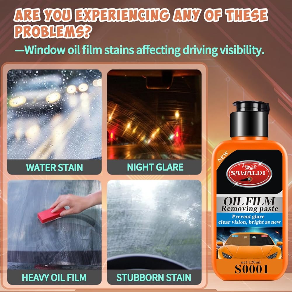 🧽Car Glass Oil Film Removal Cream make your car glass smooth and shiny without water stains and fog blocking your sight, ensure driving safety.