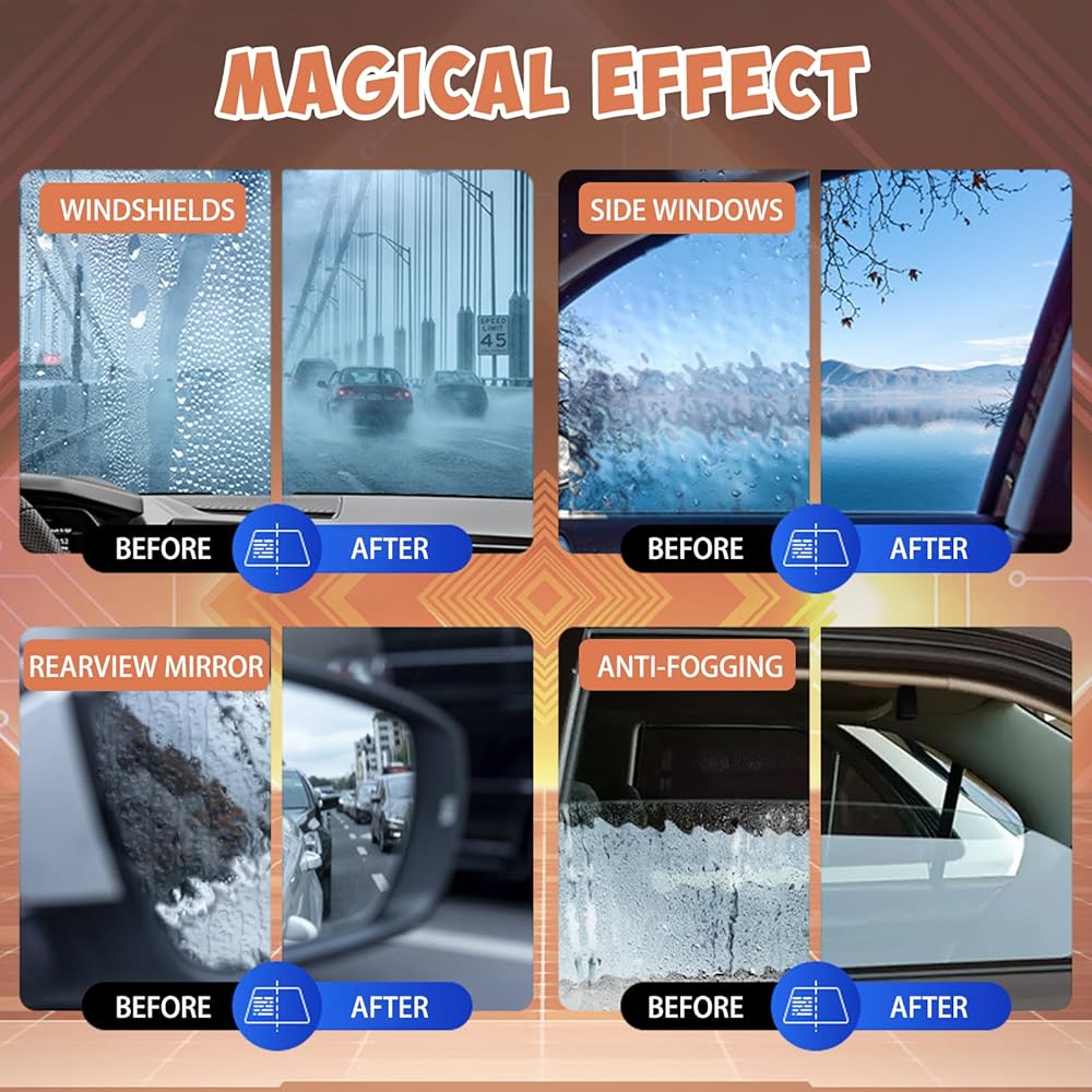 • 🌧️🌧️FORMS A PROTECTIVE LAYER: Powerful cleaning and windscreen oil film cleaner is not only a glass cleaner, but also a glass restorer! After cleaning, it makes your glass look brand new and also forms a protective layer, reduces adhesion, makes water beads roll off, protects against rain and water, prevents splashes and dust. Working in conjunction with the wipers, it greatly improves visibility and safety on rainy days.