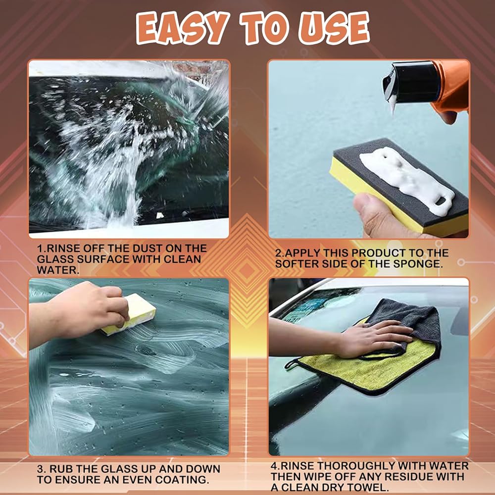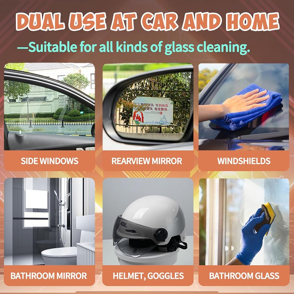• 🌈🌈 MULTIPLE APPLICATION SCENARIOS: Our car window cleaner is perfect for cleaning a variety of glass surfaces, including car windscreens, sunroofs, household windows glass, mirrors and more. It contains no acidic corrosive ingredients, not only gently and effectively removes water stains, dirt, dead insects, oil film, tree sap, bird droppings, fingerprints, and road grime from glass, but also removes the existing old waterproof coating before applying a new one.