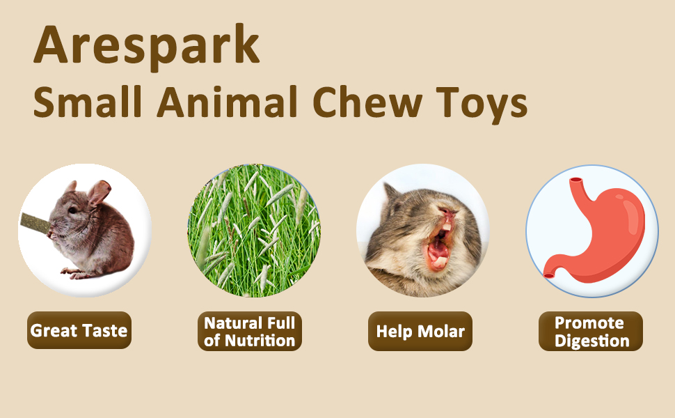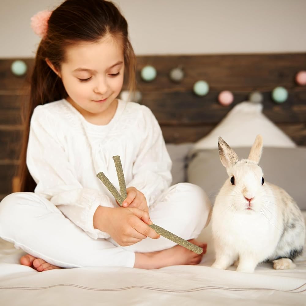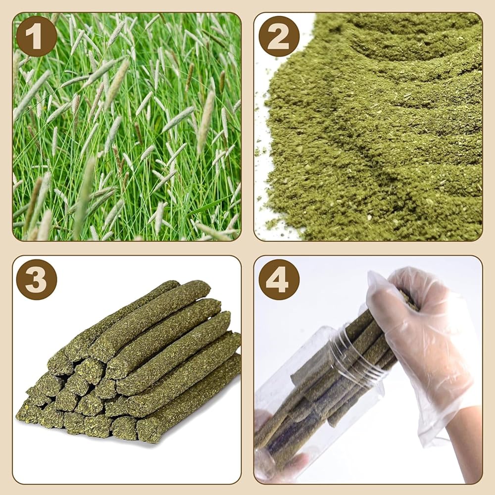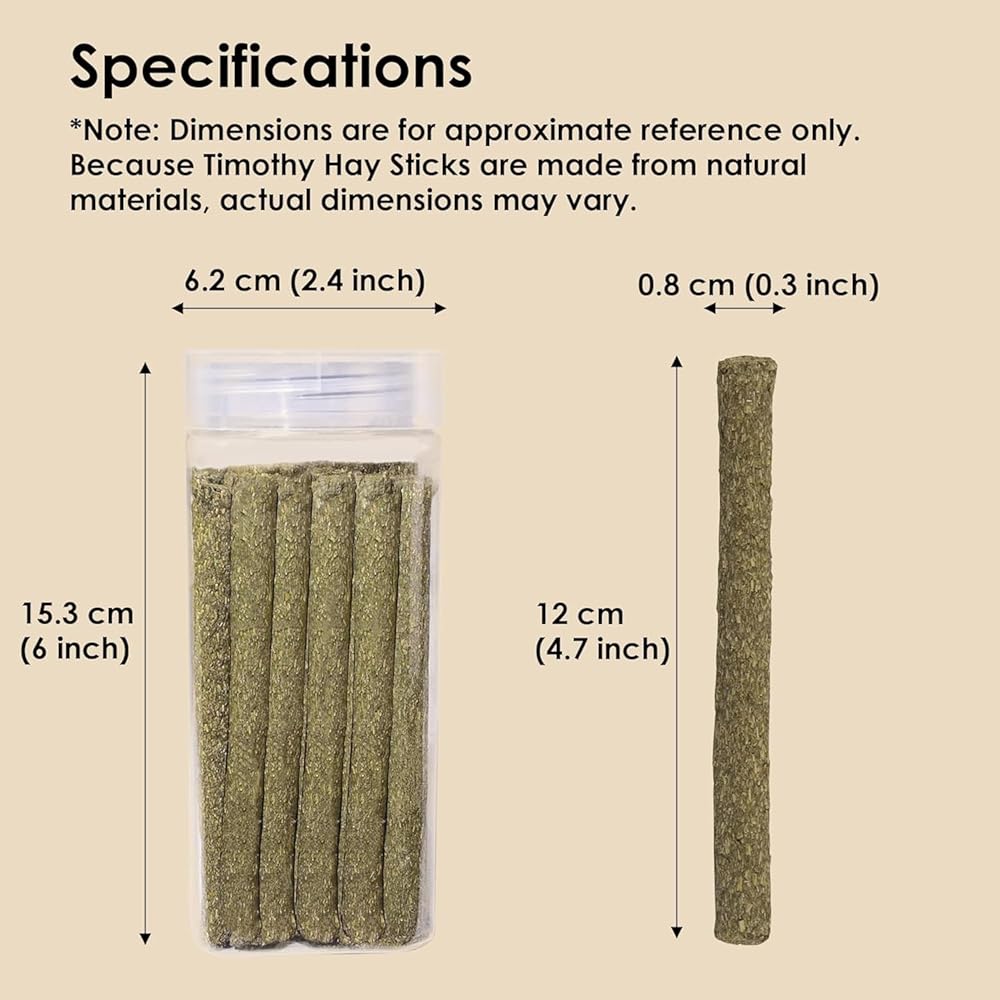 🐇【مادة طبيعية 100%】 مصنوعة يدويًا من مواد طبيعية 100%، يتم ضبط عصا Arespark Timothy Hay Stick على درجات حرارة عالية لضمان شكلها النهائي. لا يحتوي على ملونات أو هرمونات أو أي إضافات أو عطور. ركز على الحفاظ على مذاقها الأصلي، وجلب المزيد من الألياف الغذائية لحيوانك الأليف وتعزيز حركية الجهاز الهضمي.