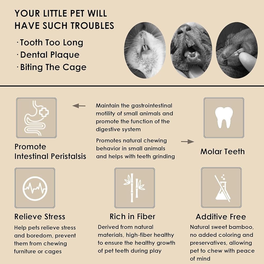 🐹【التفاعل مع الحيوانات الأليفة】 تم تصميم ألعاب المضغ هذه على شكل عصا وصلابة الخبز، وهي مثالية للتغذية اليدوية، مما يجعل التفاعل ممتعًا ويقوي علاقتك مع حيوانك الأليف. مساعدتهم على تخفيف القلق وقتل الوقت الممل.