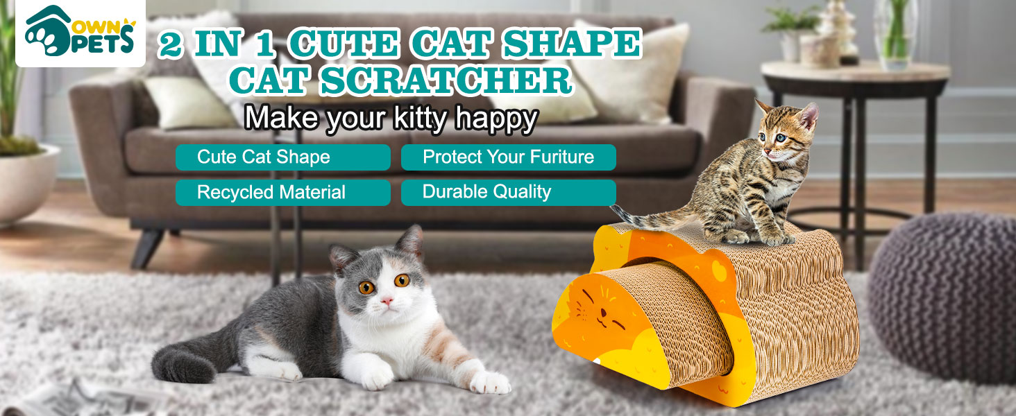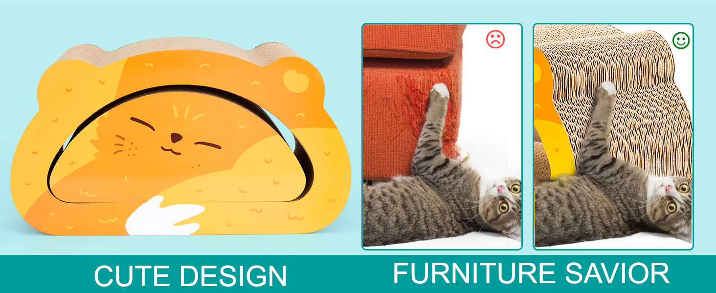 هيكل لطيف وذو وجهين ومستقر: خدش القطط بتصميم لطيف على شكل قطة، مما يضيف المزيد من المرح إلى ديكور منزلك. يمكن للهيكل المستقر أن يمنع لوح خدش القطط بشكل فعال من الانقلاب أو الانزلاق. يمكن استخدام كلا جانبي أداة الخدش للقطط للخدش، مما لا يوفر المزيد من الخيارات لقطتك فحسب، بل يطيل أيضًا العمر الإجمالي للخدش.