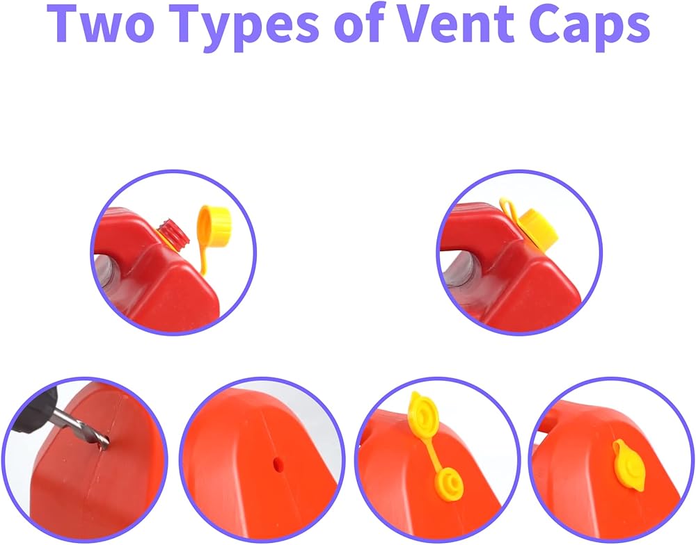 We offer two types of gas con vent caps,one is used for oil cans without a vent at the end of the oil can, All you need is a simple drilling and installation and ready to use.another is used for another oil can with a vent cap at the tail, Can replace old vent caps.you don't have to go through the hassle of replacing your old gas tank