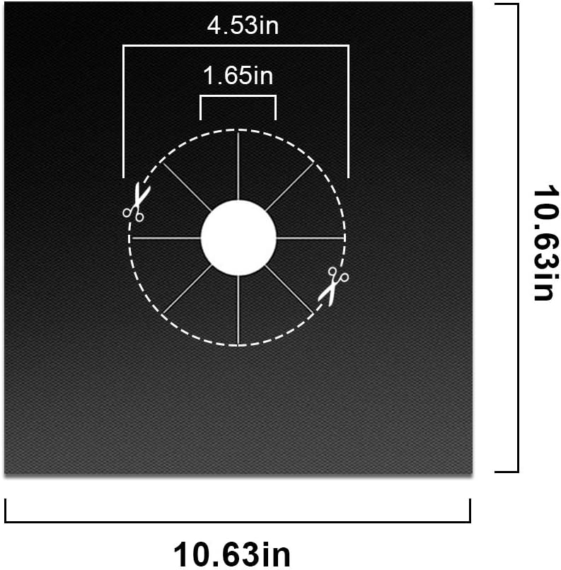 ✔ سهل القطع - أبعاد غطاء بطانة الموقد الخاص بنا هي 10.6 × 10.6 بوصة (عرض*طول)، تصميم مقطوع مسبقًا في المنتصف يسمح لك بتعديل نصف القطر الداخلي ليناسب مواقدك بسهولة.
