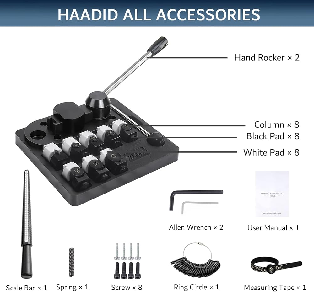 This ring making kit also includes high toughness nylon dies, and ring sizer measuring tool, ring mandrel, ring sizer guage, ring sizer belt, which may be needed when you are making rings.