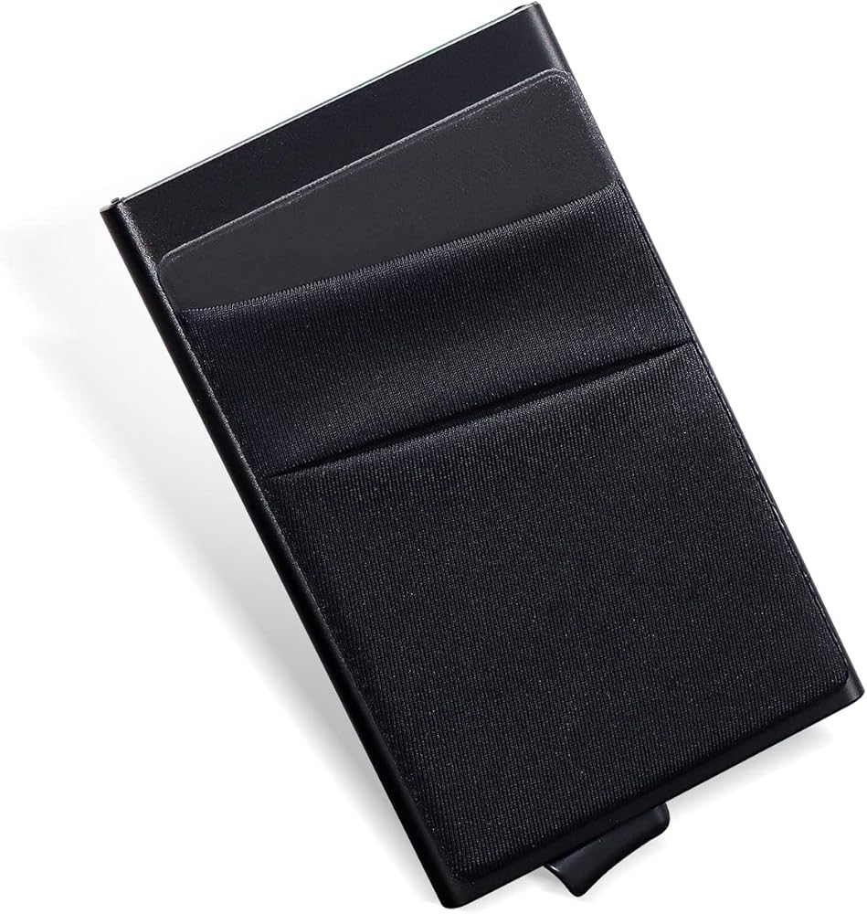 الحد الأدنى المنبثقة المحفظة | حامل بطاقات رفيع لبطاقات الائتمان للأعمال مع جيب للنقود RFID من الجلد المصنوع من الألومنيوم المعدني للبطاقات والملاحظات والعملات المعدنية (أسود)...