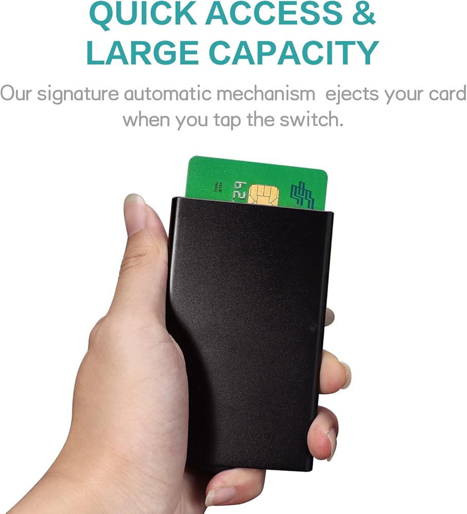 QUICK ACCESS & LARGE CAPACITY - Fumbling through your popup wallet should be a thing of the past. Our signature automatic mechanism ejects your cards at the flick of a switch.