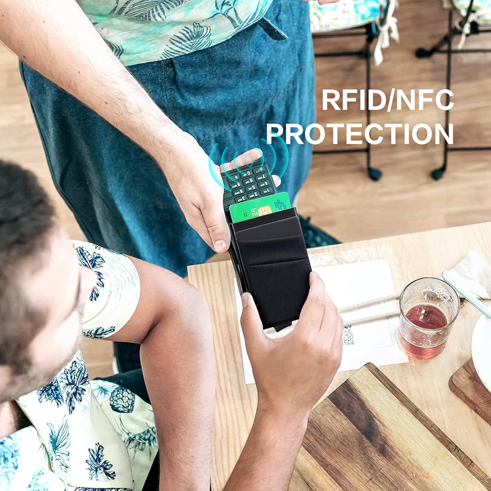RFID & NFC BLOCKING - Advanced aluminium technology protects your cards from unwanted wireless communication, and inner double silicone strips keep cards held tightly.