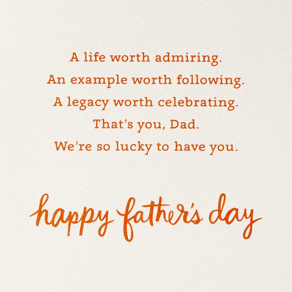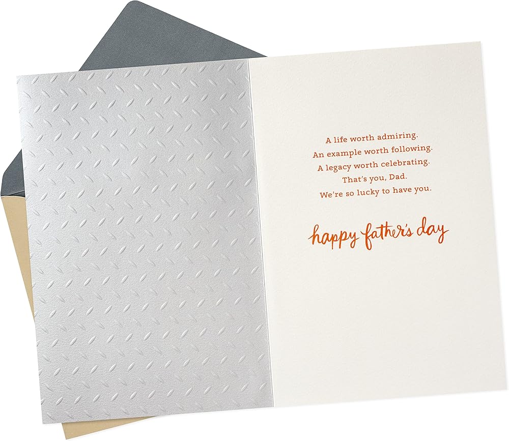 Give a great dad the very best this Father's Day with a thoughtful Father's Day card. With a genuine sentiment and striking design, there's plenty of room to write your own message inside to one of your favorite people. He's sure to appreciate a heartfelt note from his son, daughter, husband, wife, parents, grandchildren, or friend on a day made especially for celebrating him. The Hallmark brand is widely recognized as the very best for greeting cards, gift wrap, and more. For more than 100 years, Hallmark has been helping its customers make everyday moments more beautiful and celebrations more joyful.