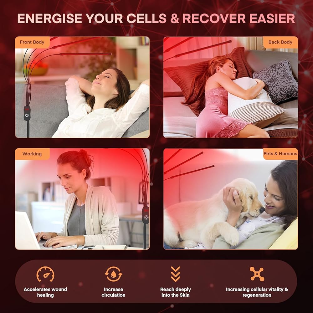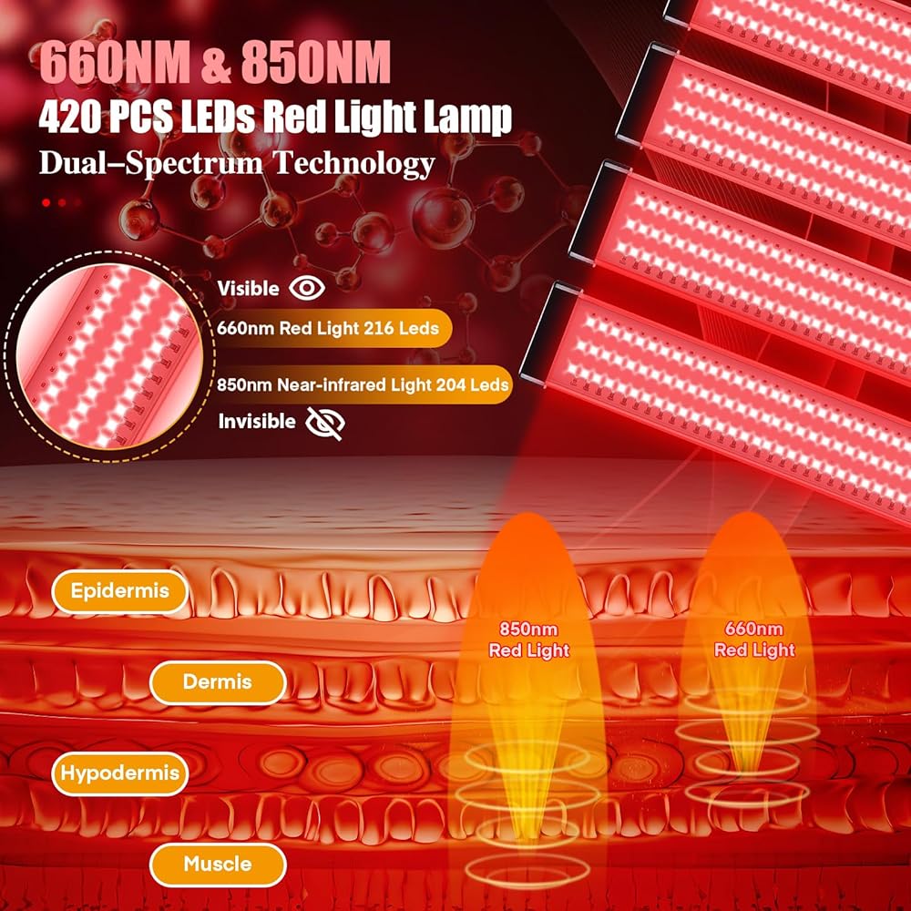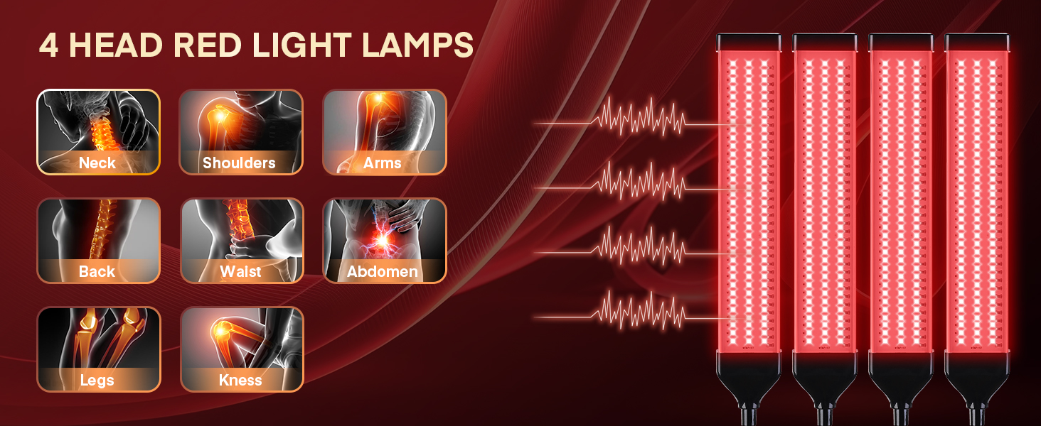 4 مصابيح ومنطقة تغطية كبيرة لكامل الجسم: يتميز مصباح العلاج بالضوء الأحمر بإجمالي 420 مصباح LED موزع بالتساوي عبر 4 أنابيب مصابيح مع خرزات أكثر عدة مرات من مصابيح الأشعة تحت الحمراء الأخرى، ويمكنه إضاءة منطقة أكبر. يتكون كل أنبوب من 54 قطعة من مصابيح LED ذات الضوء الأحمر مقاس 660 نانومتر و51 قطعة من مصابيح LED ذات الأشعة تحت الحمراء القريبة مقاس 850 نانومتر. يضمن تكوينه أقصى قدر من التغطية للجسم بالكامل ومناسب لجميع أجزاء الجسم، بما في ذلك الرقبة والكتفين والذراعين والظهر والخصر والصدر والبطن والساقين والركبة.