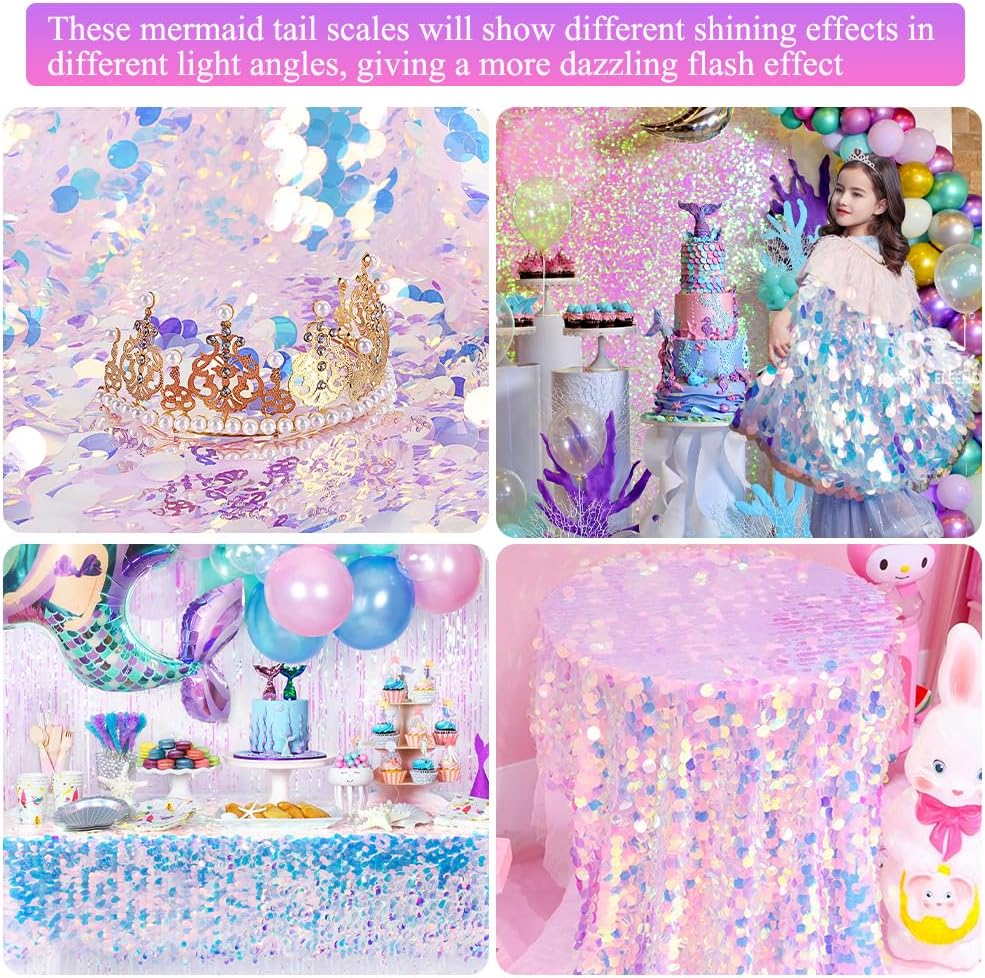 🌷【لوازم حفلات أعياد الميلاد على شكل حورية البحر】تم تصميم مفرش الطاولة الخاص بنا بمقاييس ذيل حورية البحر بمزيج من مواد الترتر والبوليستر. وهذا لا يضمن متانتها فحسب، بل يضيف أيضًا لمسة فاخرة إلى طاولة حفلتك. سطح الترتر، تمامًا مثل حراشف حورية البحر، مدمج بالترتر اللامع الذي يخلق تأثيرًا لامعًا ورائعًا، مما يجعله هدية مثالية لحفلات عيد ميلاد حورية البحر لأي حفلة حورية البحر أو حفلات تحت البحر.