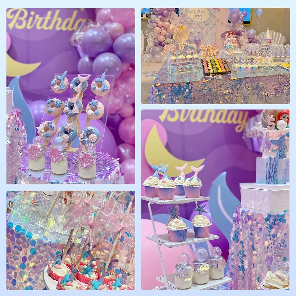💡【سهلة التنظيف والصيانة】 مفرش الطاولة الخاص بنا ليس جميلًا فحسب، بل سهل التنظيف والصيانة أيضًا. يمكنك ببساطة مسحها بقطعة قماش مبللة لإزالة أي أوساخ أو غبار، مما يضمن أنها تبدو دائمًا منعشة ونابضة بالحياة لحفلتك القادمة. هذه الميزة تجعلها خيارًا مثاليًا لأولئك الذين يقدرون الأناقة والراحة، وديكورات حورية البحر المثالية لحفلات أعياد الميلاد.