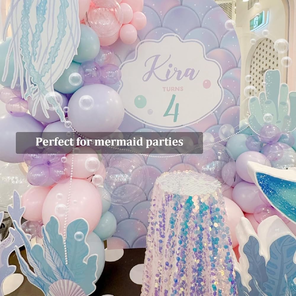 🎁【استخدامات متعددة】يمكن استخدام مفارش الطاولة قزحية الألوان هذه كمفرش طاولة على شكل حورية البحر، ولكن أيضًا من السهل خياطتها معًا لاستخدامها كخلفية على شكل حورية البحر، ومفرش طاولة على شكل حورية البحر، ورداء على شكل حورية البحر، ومفارش طاولة لحفلات حورية البحر، وديكور للحائط على شكل حورية البحر. . مناسب لجميع حفلات أعياد الميلاد على شكل حورية البحر، وحفلات استقبال الأطفال، وحفلات المحيط، والحفلات تحت البحر، ويمكنك بسهولة إضافة المزيد من أجواء حورية البحر أو حفلات الديسكو وجذب انتباه ضيوفك.