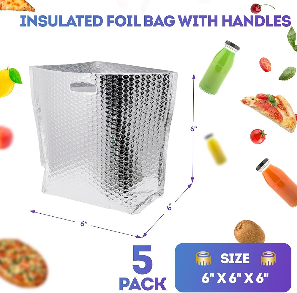 • عبوة من 5 علب لشحن الأطعمة المجمدة، مقاس 6 × 6 × 6 بوصات. تعتبر البطانة الحرارية للصناديق أمرًا ضروريًا لأي شخص أثناء التنقل. سهلة الحمل بمقابضها اليدوية، الحقيبة العازلة للحرارة مثالية لغداءك اليومي، مما يجعل أوقات الوجبات ممتعة وخالية من التوتر.