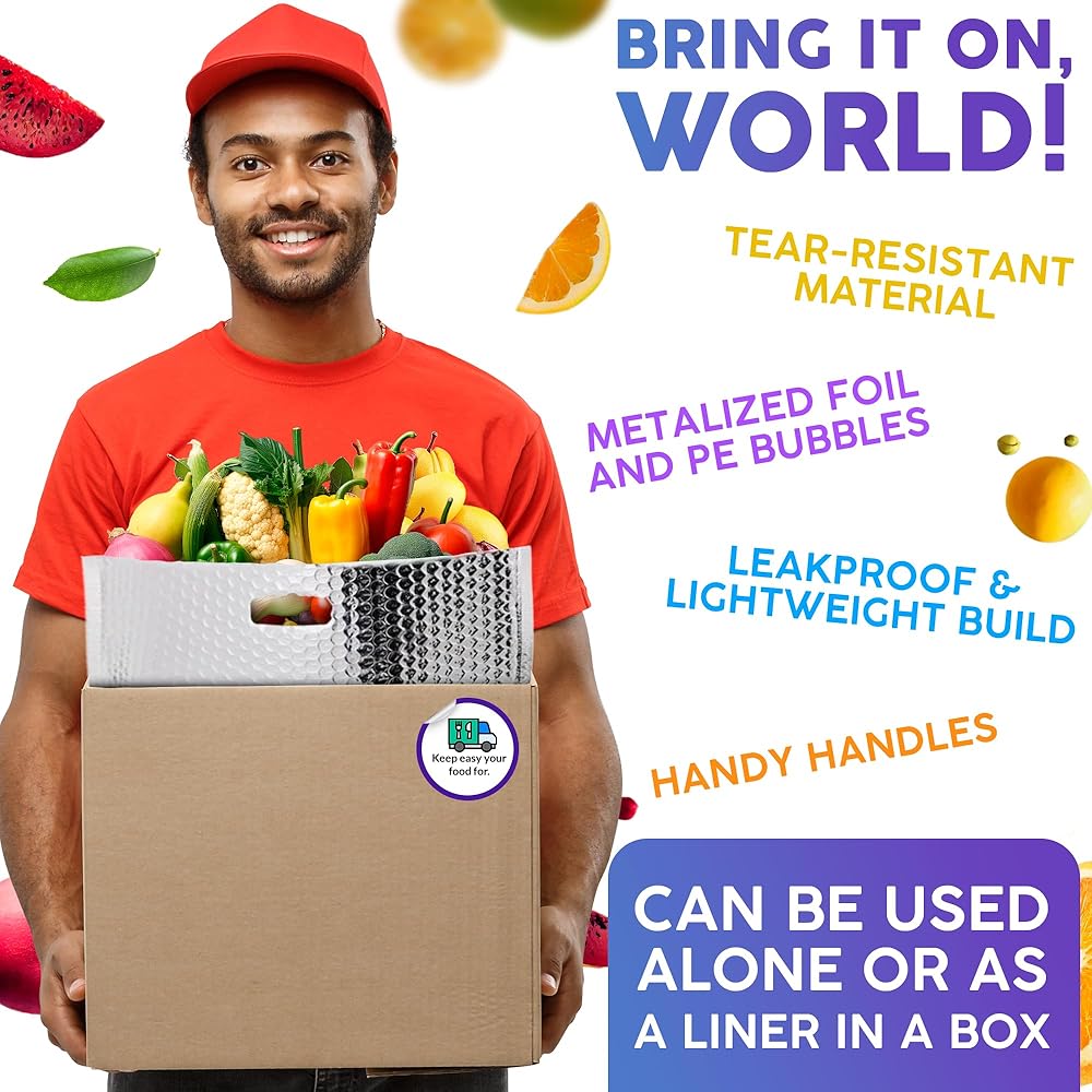 • مادة متينة وموثوقة. مصنوعة من رقائق معدنية قوية وفقاعات PE، وقد تم تصميم الأكياس الحرارية المعزولة لتدوم طويلاً. حقيبة العزل الحراري مقاومة للتمزق مما يمنحك حقيبة يمكن الاعتماد عليها وجاهزة للاستخدام اليومي.