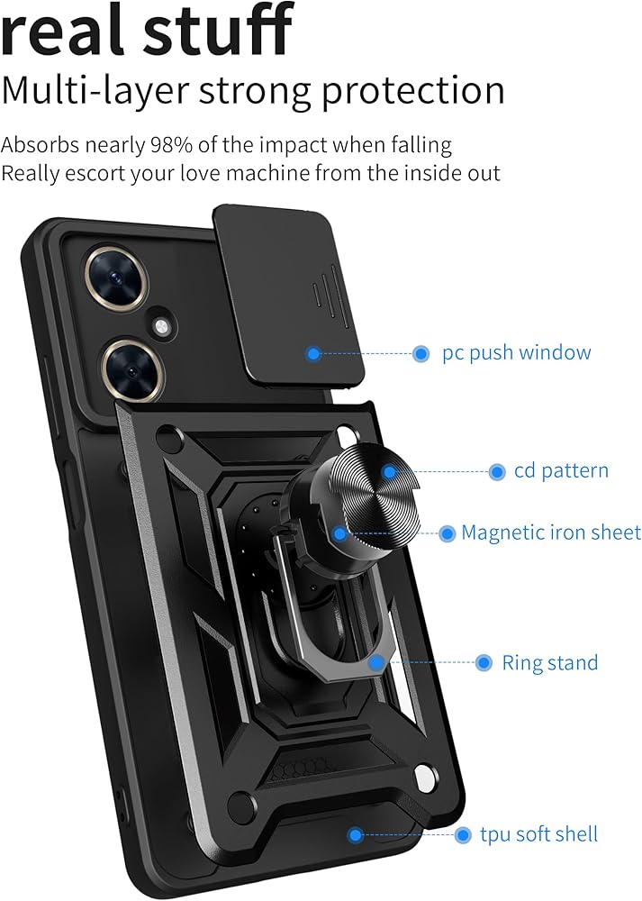 [Multifunction] Metal kickstand can rotate 360°, easy to rotate and sturdy on the case. There is a push window design at the camera, which can effectively protect the camera of the phone.Built in kickstand gives you the convenience to watch videos and movies hands-free with desired and stability.