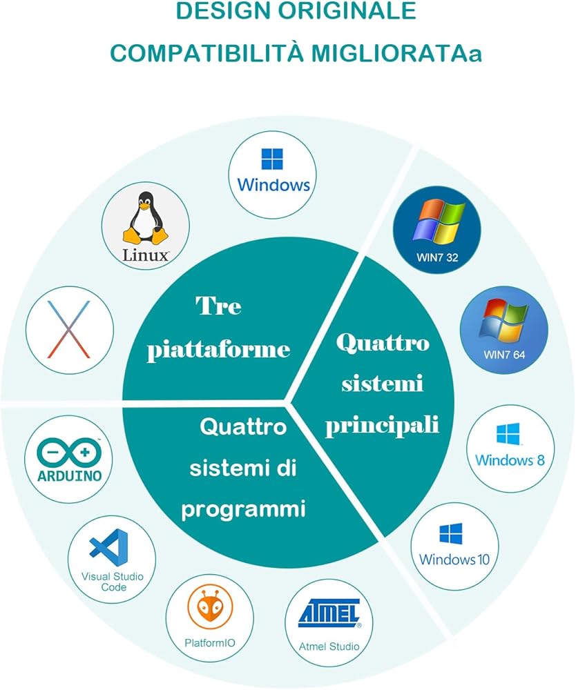 【رقاقة أصلية، توافق كامل للنظام】تستخدم المجموعة شرائح أصلية، مما يضمن التوافق السلس مع نظام Arduino بأكمله. اشعر بالثقة في تسخير المجموعة الكاملة من موارد ومكتبات Arduino من أجل التطوير والإبداع.