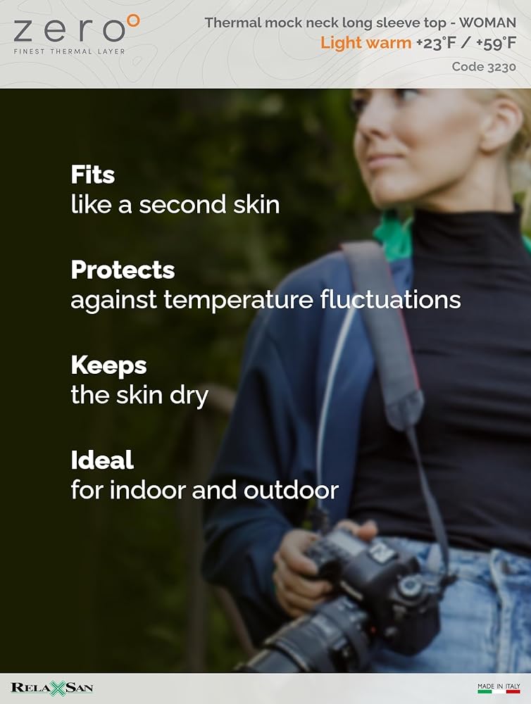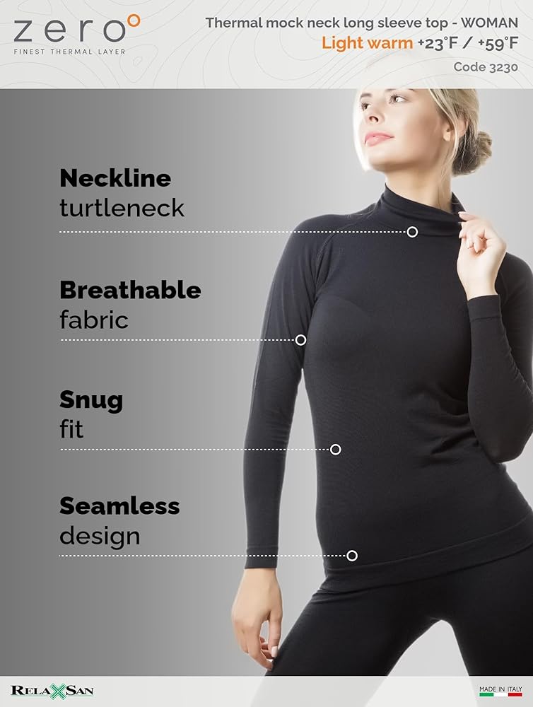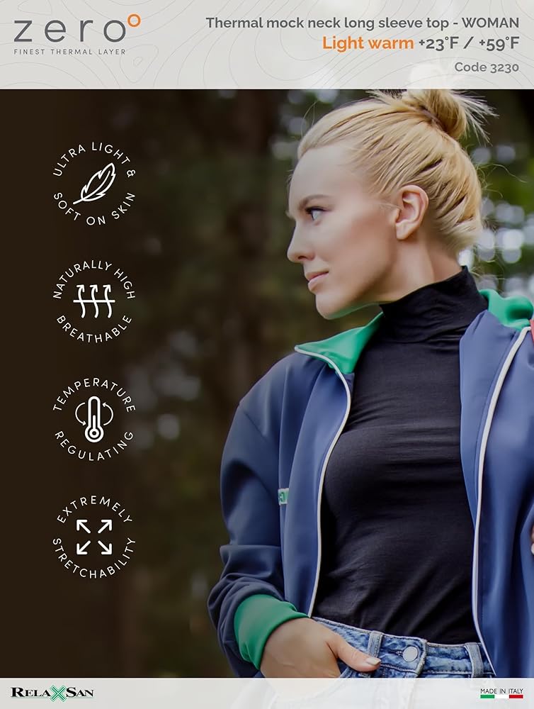 Relaxsan Zero 3230 - ياقة مدورة حرارية للسيدات بأكمام طويلة من صوف ميرينو