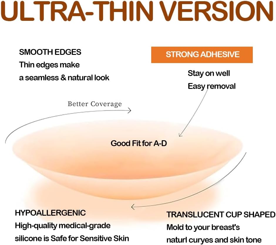 Comfortable and Portable - Women's nipple Pasties are so comfortable that you'll forget you're using them. These invisible silicone breast pads are designed to be small enough to fit in your handbag. These silicone breast pads provide a reliable solution for women looking for comfort and confidence. Say goodbye to the worry of running out of money and embrace peace of mind throughout the day.