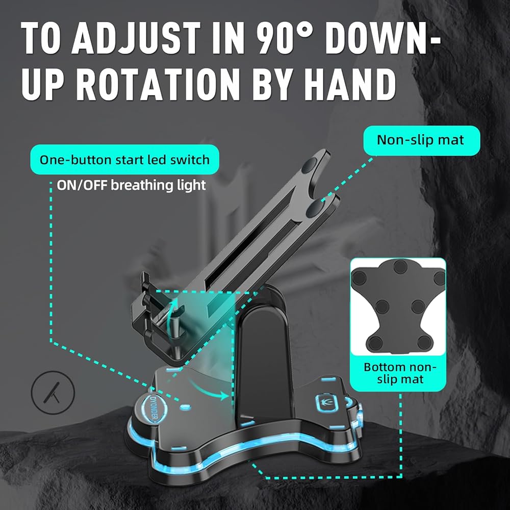 • 【Secure&Stable】The Phone Stand shell is made of ABS material, which is strong and wear-resistant, and has a long service life.The back and bottom of the stand are designed with non-slip mats for firmly support and to ensure the stability of the stand under intense gaming operations.