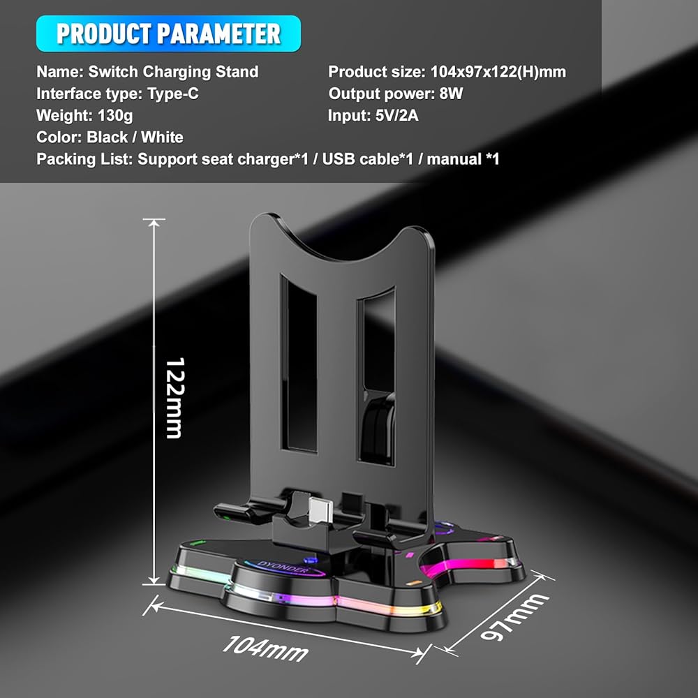 • 【Charge While Playing】 Switch Console can be directly placed it for charging, and you can also play games while charging.The bottom is surrounded by colorful and cool breathing light strips,it can Create better gaming sense experience