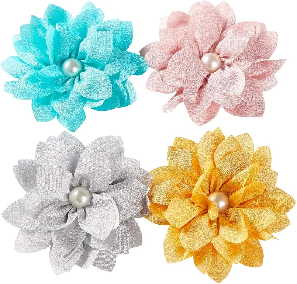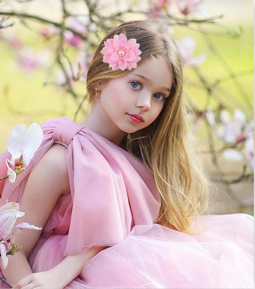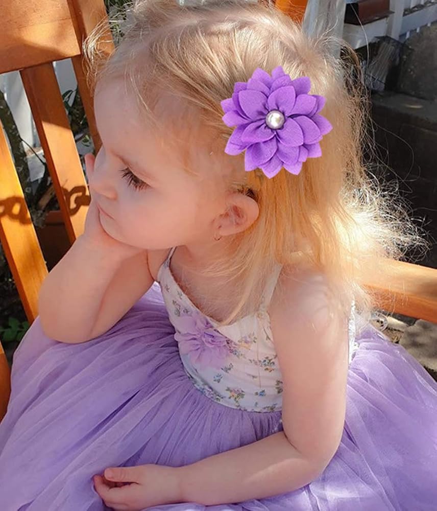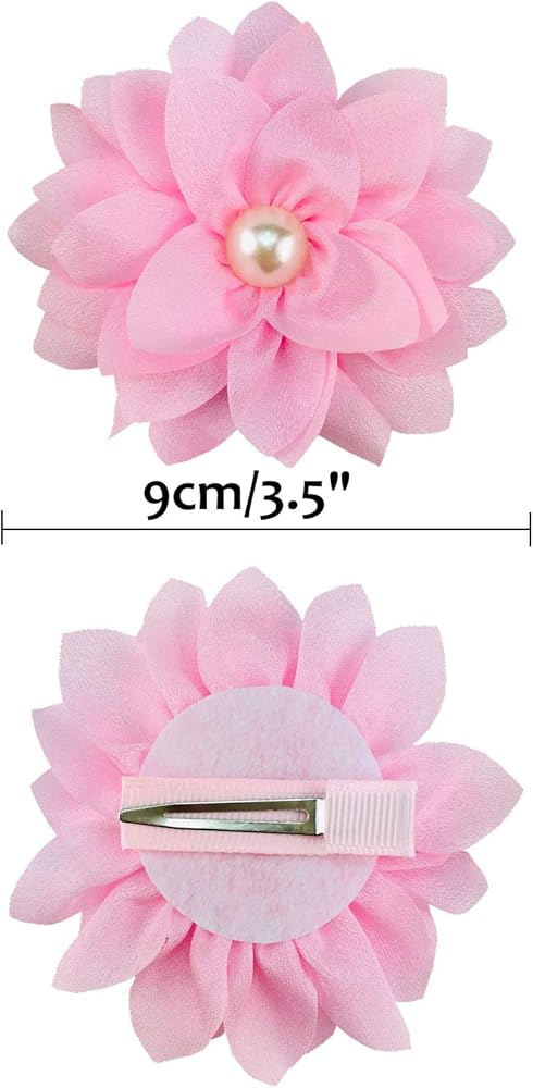 Design: Fine handmade workmanship. Fashion and pretty large chiffon flowers with artificial pearls in the centre. Every metal hair clip is half lined or covered with matching-color grosgrain ribbon. The fabric wrapped design is much safer, and also makes sure it won't pull your little girls' fine hair. These hair accessories will surelycomplement the beauty of your sweet little girls. Well-made alligator clips stay in babies' hair firmly, non slip.