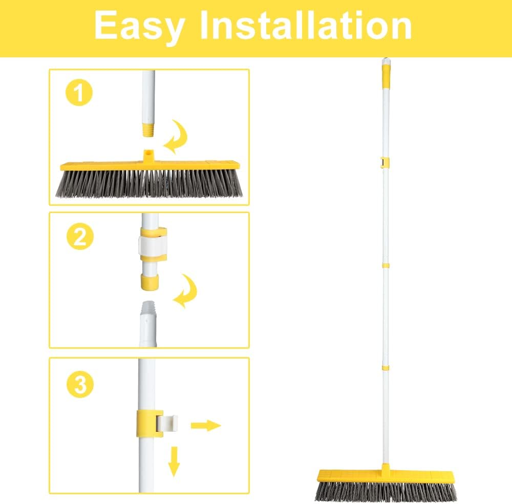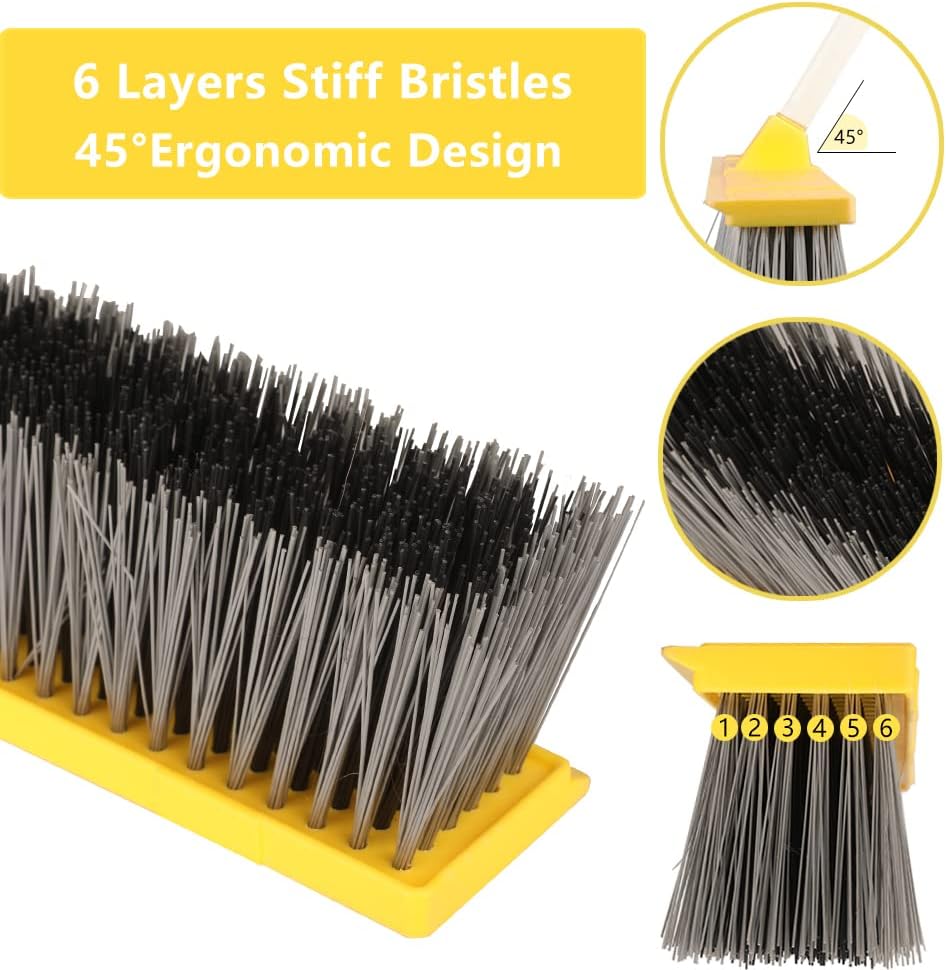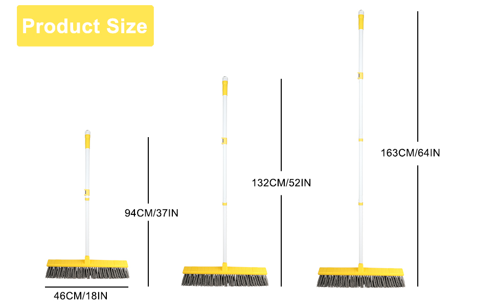 مكنسة بمقبض طويل 64 بوصة: تم تصميم فرشاة السطح بثلاثة مقابض مقسمة، والتي يمكن تعديلها من 37 بوصة إلى 64 بوصة. يمكنك القيام بالتنظيف بسهولة دون الانحناء. وفتحة التعليق على المقبض سهلة التخزين.