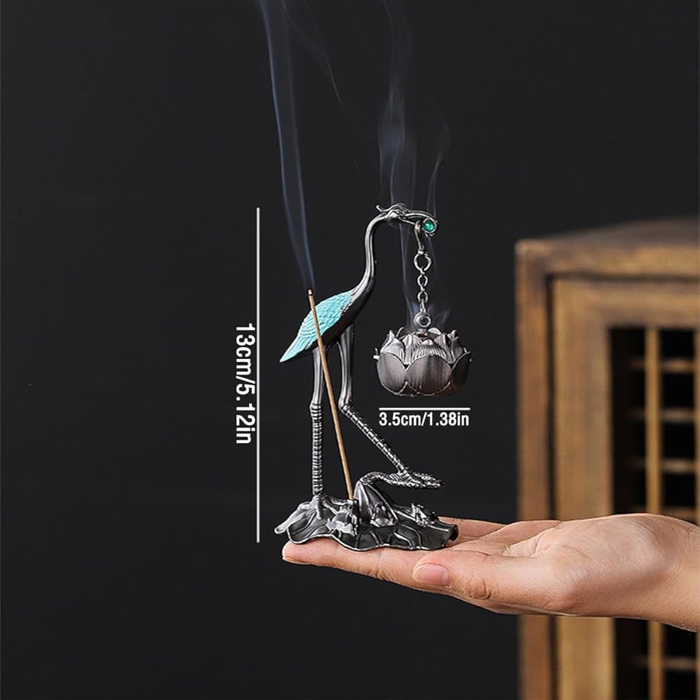 Incense Holder for Powder/Stick/Cone/Coil Incense, Crane Hanging Incense Burner, 2 in 1 Incense Stick Holder, Incense Diffuser As Gift for Yoga and Meditation