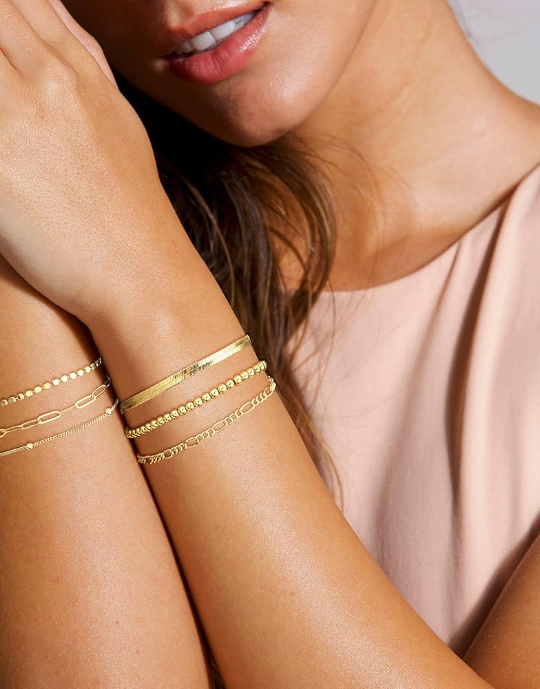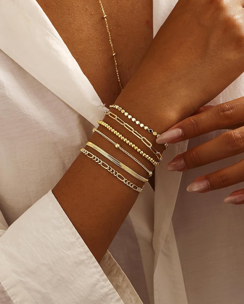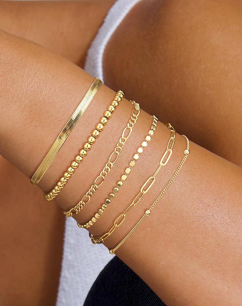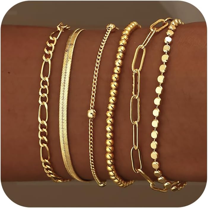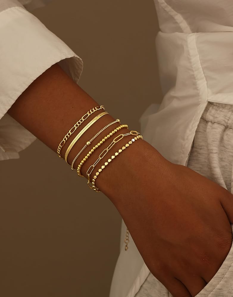 👜 【6Pcs SILVER BRACELETS SET】:Set contains: ①Beaded Bracelets ②Figaro Bracelets ③Box Chain Bracelets ④Paperclip Bracelets ⑤Herringbone Bracelets ⑥Satellite Bracelets. These Bracelets are suitable for layering as well as being worn alone.