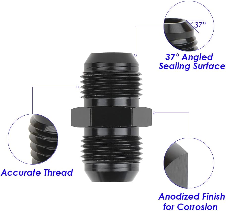 المقاس: 6AN إلى 6AN توهج ذكر، حجم الخيط هو 9/16-18 UNF. زاوية 37 درجة في كلا الطرفين، والتي لن تتسرب بسهولة.