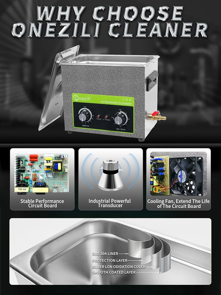 • 【جودة ممتازة】: يتم تصنيع أجهزة الموجات فوق الصوتية من أونيزيلي باستخدام مواد ومكونات عالية الجودة، وتتميز بخصائص قوية ومتينة. تخضع آلات التنظيف الصوتية هذه لمهارة حرفية دقيقة ومراقبة الجودة طوال عملية التصميم والتصنيع، وبالتالي ضمان عمر أطول.
