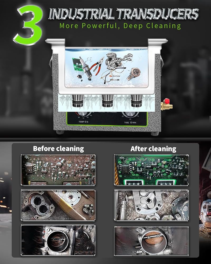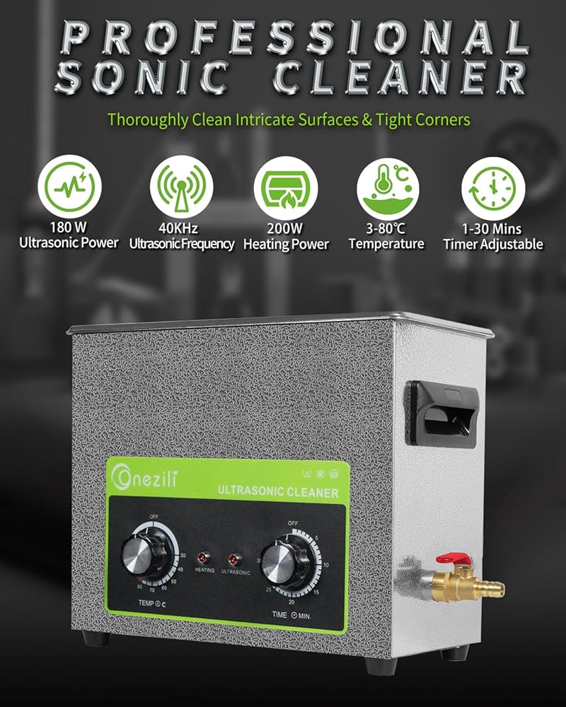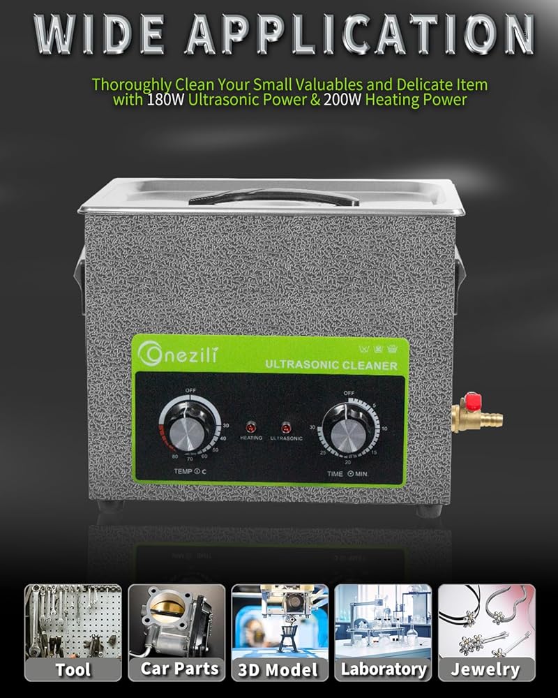 • 【تطبيق واسع】: استمتع بالتنظيف الاحترافي في مطبخك أو معملك الخاص. يوفر منظف الموجات فوق الصوتية ONEZILI 3L تنظيفًا عميقًا وعالي الجودة دون أي مواد كيميائية أو إشعاعات ضارة. يزيل بسرعة الصدأ والكربون المطبوخ والبقع من قطع غيار السيارات وأدوات تحسين المنزل ولقم الثقب والأواني والمجوهرات والساعات والنظارات والمزيد!