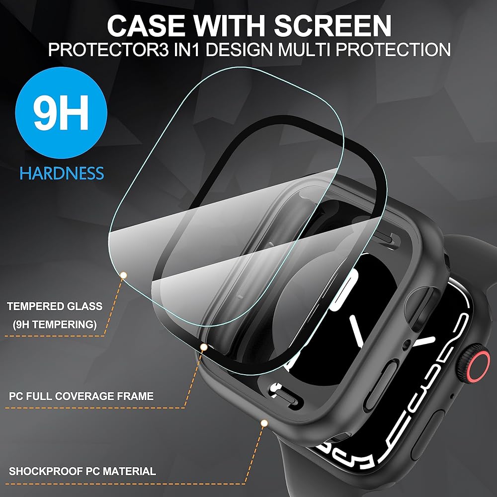 【مادة المنتج】واقيات زجاجية مقواة مدمجة أمامية وخلفية، ممتص الصدمات من البولي كربونات الصلب المتين وواقي شاشة مدمج من الزجاج المقوى 9H. تم تصميم العلبة بفتحة دقيقة لسهولة الوصول إلى جميع أدوات التحكم والأزرار وأجهزة الاستشعار وجميع وظائف الساعة.